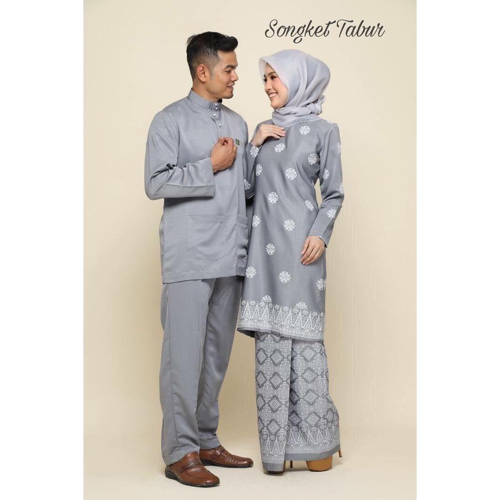 Sedondon Set Couple Baju Kurung Moden Songket Tabur Baju Melayu Grey Kelabu Shopee Malaysia